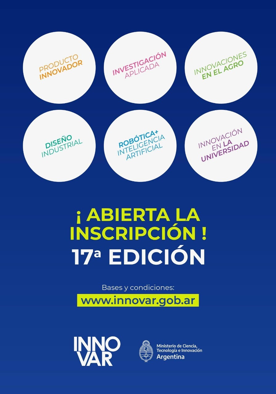 La Secretaría de Ciencia, Tecnología, Innovación Productiva y Cultura del Chubut informa que el Ministerio de Ciencia de la Nación abrió la convocatoria de proyectos para la decimoséptima edición del Concurso Nacional de Innovaciones (Innovar) con la finalidad impulsar y promover invenciones de alto impacto social y comercial, potenciar emprendimientos de base tecnológica y dar visibilidad a procesos, productos patentados o patentables en Argentina, que repartirá un total $23.500.000 en premios.