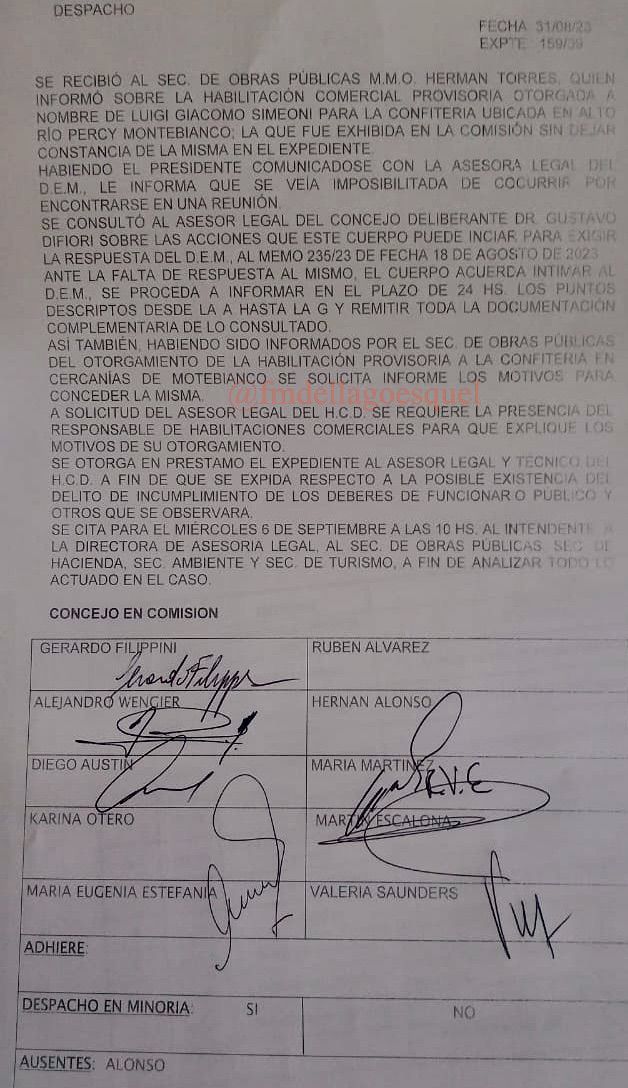 “se plantea la posibilidad de incumpliendo de funcionario público porque se da la habilitación comercial a un lugar que no estaría en condiciones de funcionar, tenemos el apoyo del asesor legal del concejo y estamos citando a los funcionarios Torres, la gente de habilitaciones comerciales que dependen de hacienda, y el intendente”, remarcó Wengier.