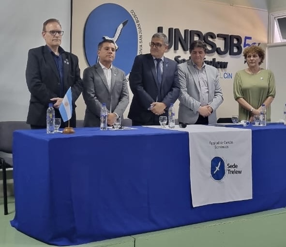 Agregó que “la Universidad pública cambia trayectorias, cambia oportunidades, cambia vidas. Como cambió la del decano que está saliendo hoy, como cambió la mía, como cambió la de muchos de los docentes y graduados que veo acá hoy, varios de ellos chicos de pueblos del interior de Chubut que hoy son destacados profesionales de las Ciencias Económicas”.
