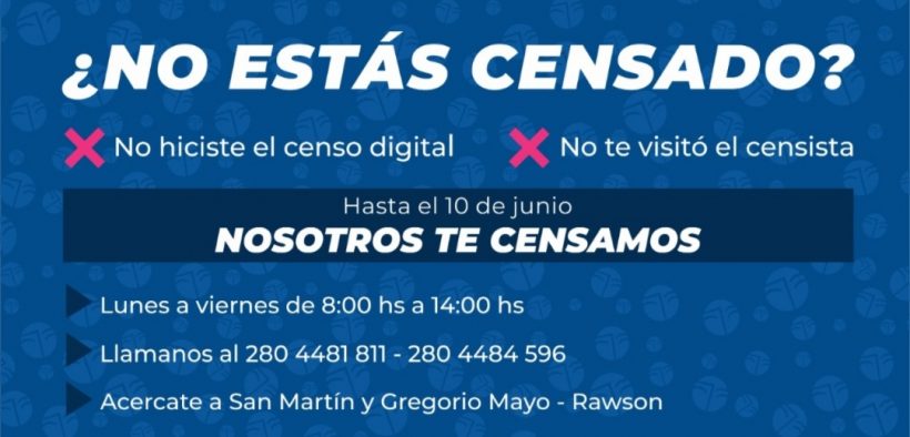 El Gobierno del Chubut convoca a la población que no fue censada durante el Operativo Nacional del ‘Censo 2022’, que se desarrolló el pasado 18 de mayo, a poder realizar el trámite y de esa forma poder completar los datos de cada hogar de la Provincia.