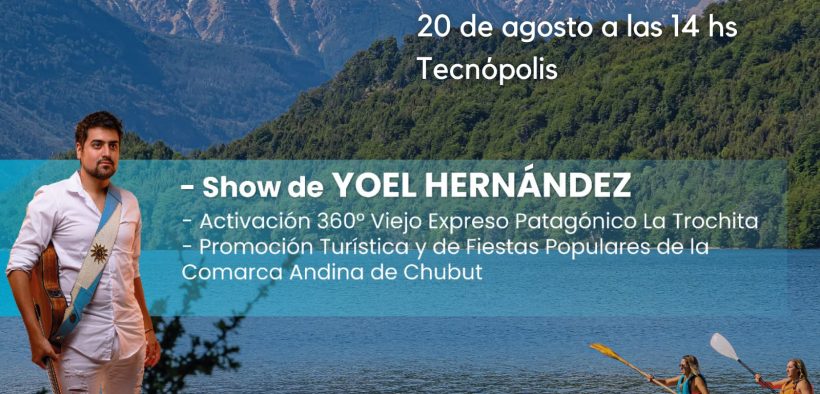 En este contexto, el reconocido artista chubutense Yoel Hernández, oriundo de El Maitén, realizará un show a las 14:00 para todo el público presente. Cabe recordar que en 2016 Yoel obtuvo el premio “Revelación” en el Festival de Cosquín y posteriormente tuvo la oportunidad de representar a su tierra durante cinco años consecutivos en el “Festival Nacional de Folklore de Cosquín”, asimismo, días atrás se presentó en “Sonorama Ribera 2023” el Festival más importante de España en la ciudad de Aranda de Duero.