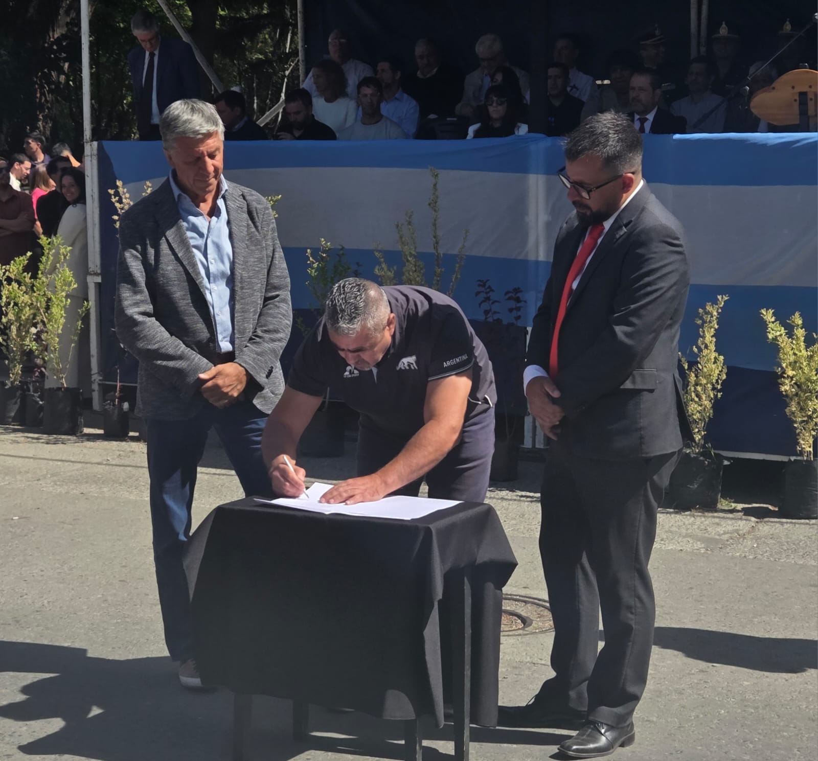 Con la firma de convenios para obras, Provincia acompañó el acto central por el aniversario de Esquel