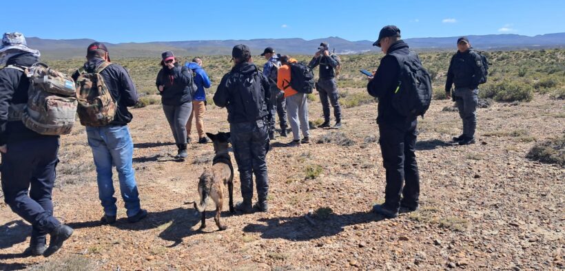 Durante las últimas tareas realizadas se recorrieron unos 15 kilómetros de terreno participando dieciséis efectivos policiales, contando con la intervención del personal de la División Búsqueda de Personas y de la División Canes Comodoro Rivadavia, con la asistencia de un perro adiestrado en RH.