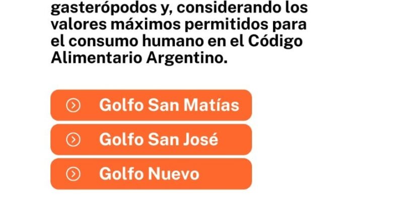 El Gobierno del Chubut, a través de la Secretaría de Pesca, recuerda que continúan vigentes las vedas oportunamente establecidas para la extracción de moluscos bivalvos y gasterópodos en las zonas de los Golfos San José, Nuevo y San Matías.