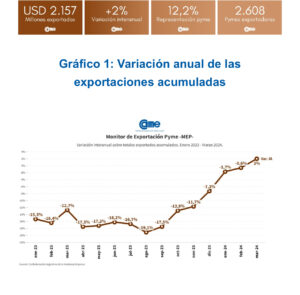 Las exportaciones de las empresas pymes crecieron 2%, alcanzando los USD 2.157 millones exportado, lo que representa el 12,2% del total exportado por la República Argentina en el primer trimestre de 2024.