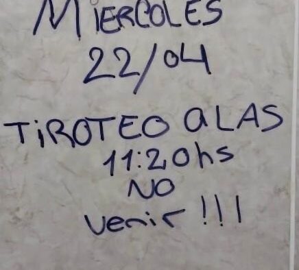 El miércoles 22/04 tiroteo a las 11:30 hs, no venir”.