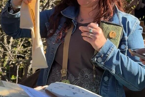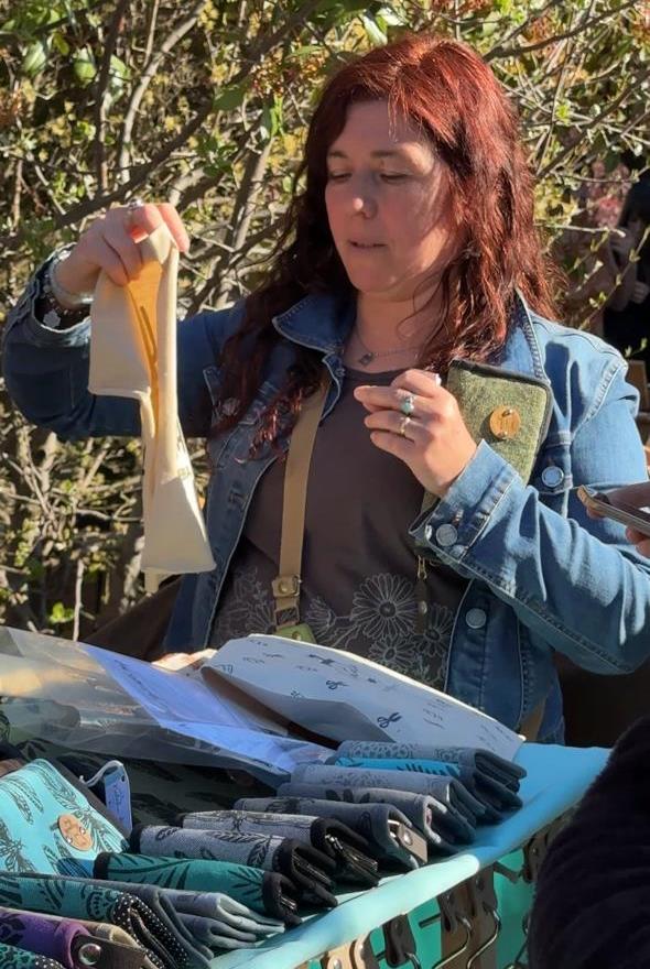 Consultada por sus trabajos y su oficio, Natalia Galli dio detalles del trabajo que realiza, “yo confecciono con telas, hago bolsos, riñoneras, billeteras, accesorios, estampo mis telas y las coso en una máquina a pedal, hago con eso todos mis productos, también ayer hubo cerámica, joyería, plantas, ropa, maderas, juguetes, accesorios de decoración, amigurumis, regionales, fotografía, también artículos de decoración pintados, tenemos de todo”.