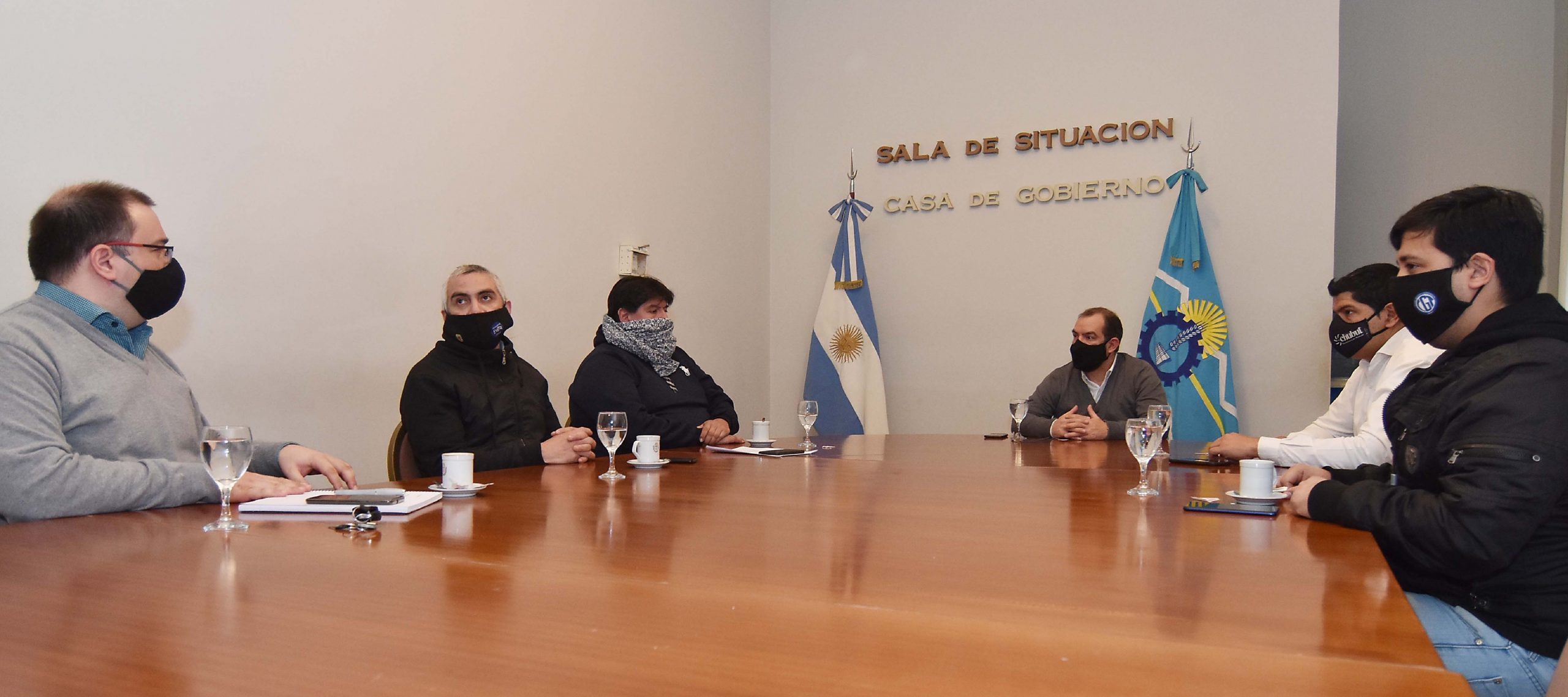 Los ministros de Gobierno y Justicia, José María Grazzini, y de Desarrollo Social, Familia, Mujer y Juventud, Gustavo Hermida, recibieron este martes en la Sala de Situación de Casa de Gobierno, a representantes del Movimiento Evita Chubut, para diagramar una agenda de trabajo en conjunto que permita optimizar recursos y avanzar en programas que permitan generar empleo y satisfacer la demanda alimenticia de los sectores más vulnerables.