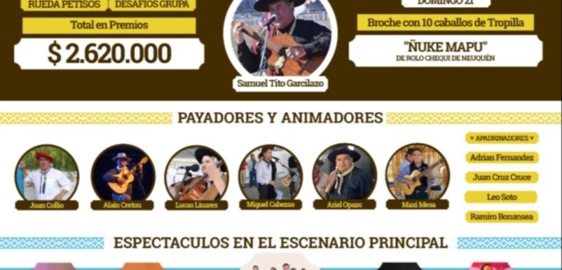 Además afirmó que todos los comerciantes están listos para recibir al turismo que llegará a Gualjaina para disfrutar de la fiesta, “tenemos un predio de dos hectáreas y allí está el escenario mayor llamado Heroes de Malvinas. Tenemos el campo de jineteada con riego, al escenario se le suman más de 45 stands, además de los comercios de la comunidad que se han reforzado de mercadería”.