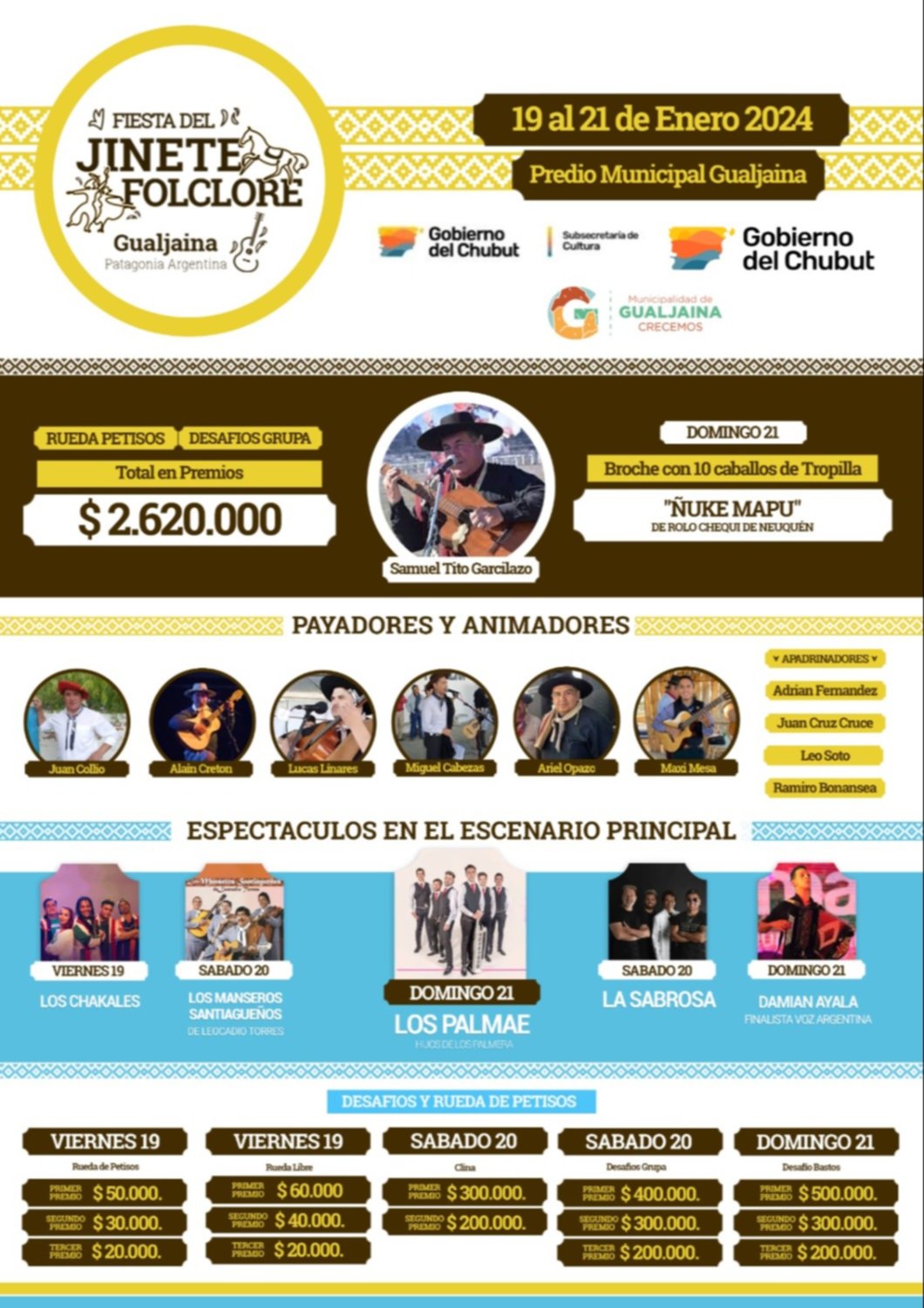 Este fin de semana Gualjaina vive a pleno la Fiesta del Jinete y el Folclore. En diálogo con FM DEL LAGO Raúl Pasarin dio detalles de toda la agenda de actividades que habrá durante estos tres días: “Estamos trabajando intensamente para que esta segunda fiesta del jinete y el folclore esté allí arriba, este año se trabajó intensamente por decisión del intendente Limarieri para que esto se haga. Se hace esta edición con un buen trabajo y una grilla importante de artistas, tenemos artistas de primer nivel todas las noches, artistas de Buenos Aires y locales, mañana viernes 19 actuarán durante todo el día, danzas que llegan de diferentes localidades”.