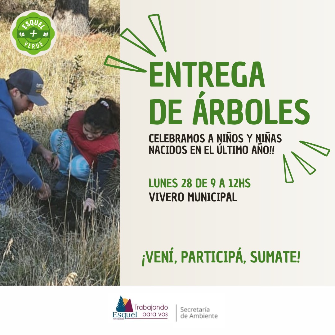 En el marco del Dia del Árbol, hoy lunes 28 de agosto de 9 a 12 hs. la Municipalidad de Esquel a través de la Secretaría de Ambiente hará entrega de plantines a niños nacidos durante este año.