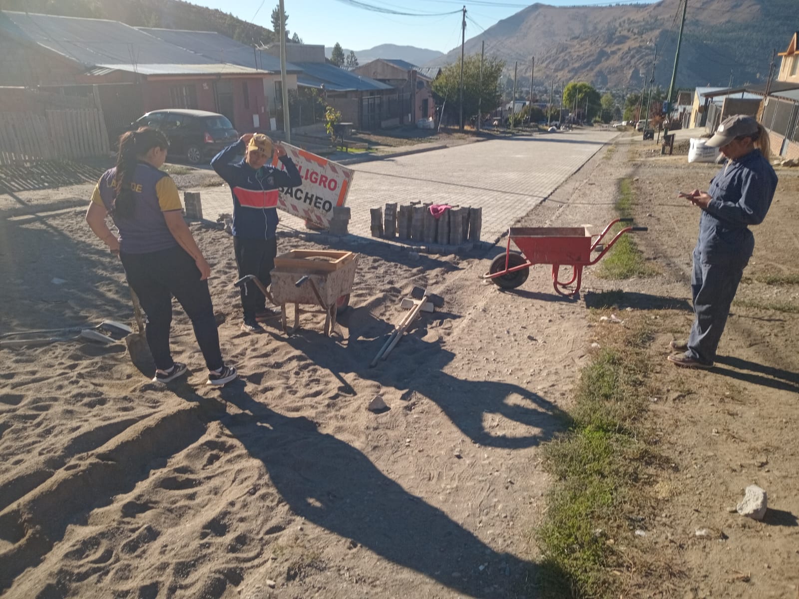 El trabajo de la cooperativa es integral. No se trata solo de colocar las piezas de hormigón; las tareas incluyen sacar niveles, acarrear materiales y asegurar la base para que la obra perdure. Según explicaron, el municipio provee los insumos de alta calidad, mientras ellas aportan la mano de obra en jornadas que van de 8 a 15 horas.