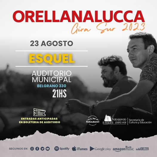 Llega a Esquel 𝐎𝐑𝐄𝐋𝐋𝐀𝐍𝐀𝐋𝐔𝐂𝐂𝐀 el 23 de Agosto a las 21hs. en el Auditorio Municipal.