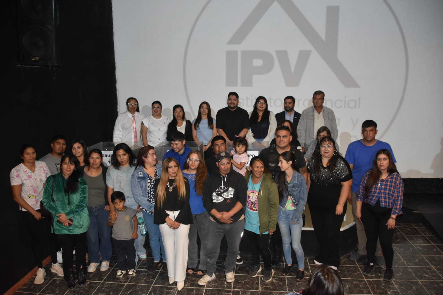 El acto tuvo lugar en las instalaciones del Cine Nac y contó con la participación del intendente local, Gustavo Loyaute; el delegado de zona sur del IPV en Comodoro Rivadavia, Edgardo Lanús; la abogada Claudia Leonori y el escribano del organismo provincial, Ignacio Lleral.