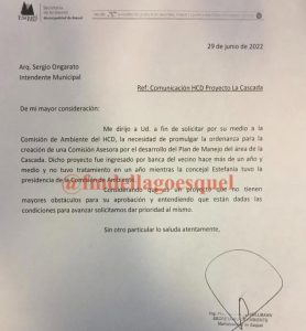 El ambiente está caliente en la política local, por estas horas trasciende que el intendente Ongarato por impulso de los concejales radicales le pediría la renuncia al secretario de ambiente Daniel Hollman, las serias diferencias con el bloque radical serían lo que motivará que el intendente diera curso al pedido, en medio de la tensa situación Daniel Hollman le mandó una nota al Concejo Deliberante pidiéndole que la concejal Estefanía asista a la comisión asesora de la reserva urbana La Cascada, ya que es indispensable la representatividad del cuerpo legislativo para la toma de decisiones, en ese sentido, Austin dio su versión y manifestó “esa nota llegó con copia al concejo deliberante, la Reserva Urbana La Zeta tiene que tener presencia del concejo deliberante, desconocía que la persona designada no estaba asistiendo a la comisiones, desinteligencias y diferencias de criterios vamos a tener siempre, pero la responsabilidad indica que hay que trabajar hacia adentro y cumplir con las responsabilidades que tenemos que tener”.
