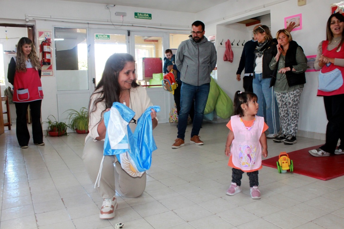 Asimismo, comentó que por primera vez en 30 años el jardín cuenta con un mástil propio para poder izar la bandera, un hecho significativo para la identidad institucional y el fortalecimiento de los valores en la primera infancia.
