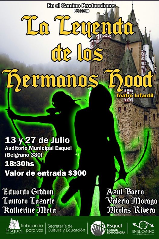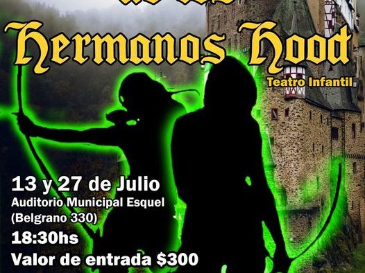 El próximo 13 y 27 de Julio a las 18:30hs, se presenta la obra de teatro infantil “La leyenda de los hermanos Hood” en el Auditorio Municipal ( Belgrano 330).