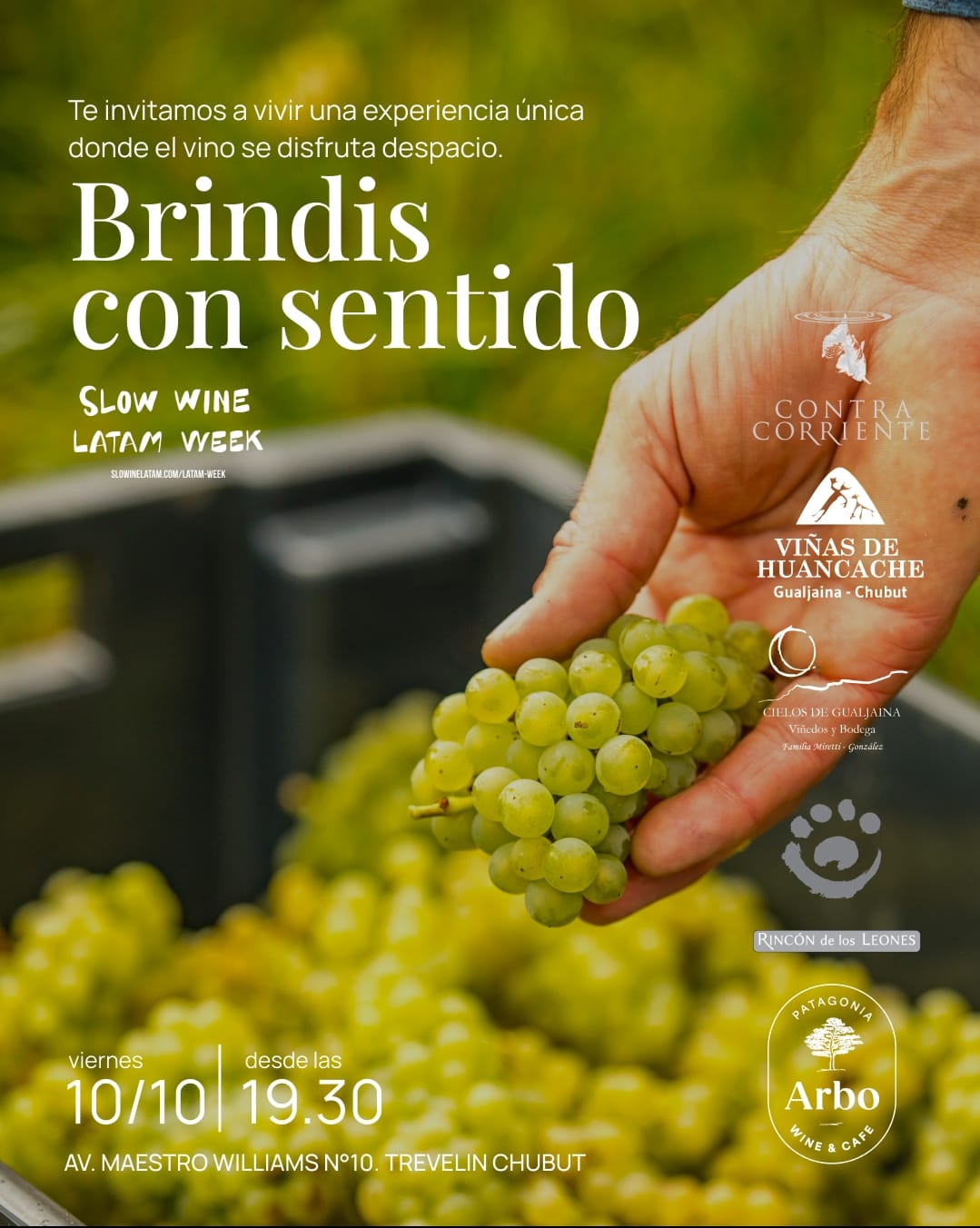 Este viernes 10 de octubre, a las 19:30 horas, en Arbo Wine & Café, cuatro bodegas de la región que adhieren a la filosofía Slow Wine Coalition se reunirán para compartir sus productos con el público. El evento, que se realiza en el marco de la semana que destaca la producción latina, contará con la participación de Contracorriente, Cielos de Gualjaina, Viñas de Huancache y Rincón de los Leones.