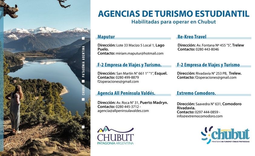 Turismo y Educación difunden agencias de viajes estudiantiles autorizadas para operar en Chubut