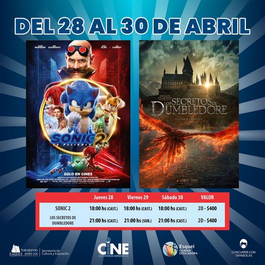 Desde el 28 al 30 de abril podrás disfrutar estas películas en el Auditorio Municipal, Belgrano 330.
