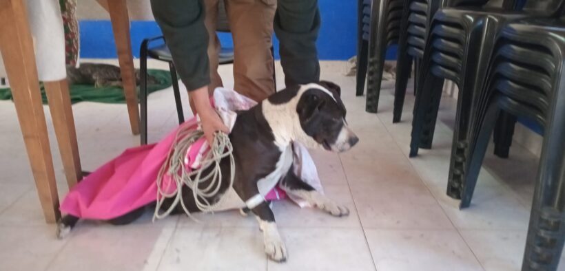 “Es una perra que andaba abandonada en la calle y la rescaté, ahora la traje para operarla para que no se reproduzca,” comentó Camilo. “Acá están los veterinarios, vivo acá en Costanera, y esto nos viene muy bien porque nos acercamos acá a la sede.”