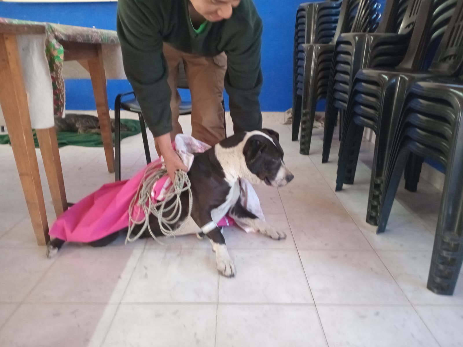 “Es una perra que andaba abandonada en la calle y la rescaté, ahora la traje para operarla para que no se reproduzca,” comentó Camilo. “Acá están los veterinarios, vivo acá en Costanera, y esto nos viene muy bien porque nos acercamos acá a la sede.”
