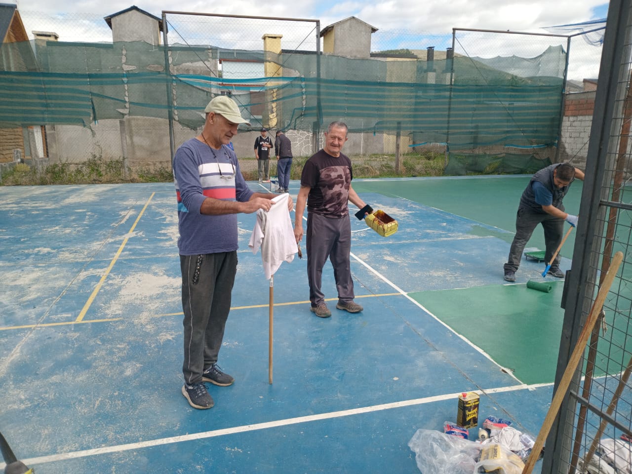 Nancy, integrante del equipo de Newcom que utiliza el predio habitualmente, explicó a FM DEL LAGO el sentido de la jornada: “Estamos poniendo un granito de arena para mejorar este espacio que tantas satisfacciones nos da. Jugamos dos o tres veces por semana, hablamos con Pedro Manosalva, conseguimos la pintura y hoy estamos trabajando. Es lindo que nos dejen participar; hay que devolver un poco de lo que nos dan”.